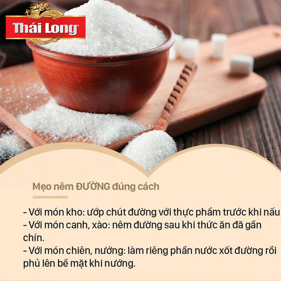 Đường có vị ngọt, sẽ giúp món ăn của bạn có sự hài hòa trong vị giác. Nhưng bởi do đặc tính lý hóa mà đường rất dễ cháy khi tác động ở nhiệt độ cao, tạo nên nhiều độc tố khiến ảnh hưởng nghiêm trọng đến sức khỏe của bạn. Đừng nêm đường khi thức ăn gần chín, vì đường sẽ lâu tan làm món ăn bị ngọt hơn so với bình thường.