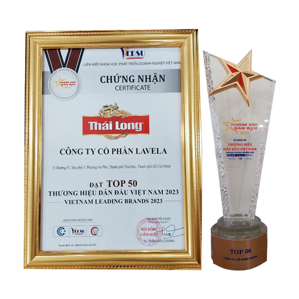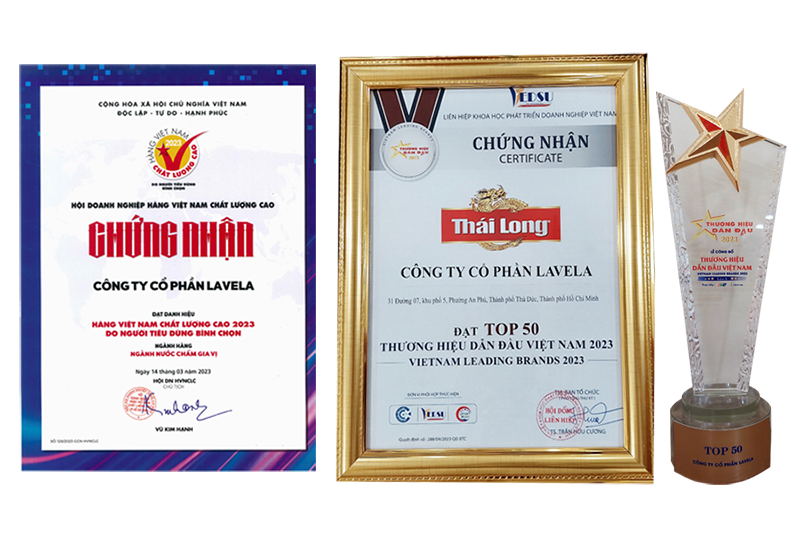 Nhờ sự tin yêu của Người tiêu dùng và khách hàng, LAVELA vinh dự là một trong những doanh nghiệp đã giữ vững danh hiệu Hàng Việt Nam Chất Lượng Cao Năm 2023 do người tiêu dùng bình chọn. Hơn cả một danh hiệu, đây chính là minh chứng cho sự tin tưởng và yêu mến mà người tiêu dùng đã dành cho thương hiệu Thái Long – nước mắm đặc sản Phan Thiết nói riêng và Công ty Cổ phần LAVELA nói chung.