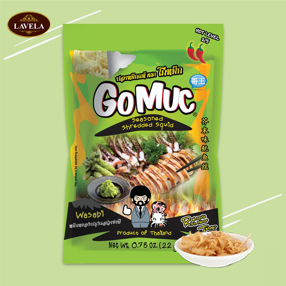 Những ai thích vị nồng, xộc lên mũi của wasaibi chắc hẵn không thể bỏ qua siêu phẩm này. Trong một gói mực nhỏ, nhưng lại mang đầy đủ hương vị của từng sợi mực đậm đà vị wasabi thơm ngon. Khi nếm thử hương vị wasaibi đặc trưng, sẽ khiến bạn vô cùng thích thú, Vị không quá cay hơi nồng, khá thơm mùi wasabi đặc trưng, khiến cho cuộc vui bạn thêm phần thú vị hơn đấy.Ngồi nhâm nhi cùng bạn bè gói mực nhỏ xinh này vào dịp cuối tuần kèm theo một ít bia, cho cuộc vui của bạn thêm bùng nổ hương vị mực tươi nguyên chất.