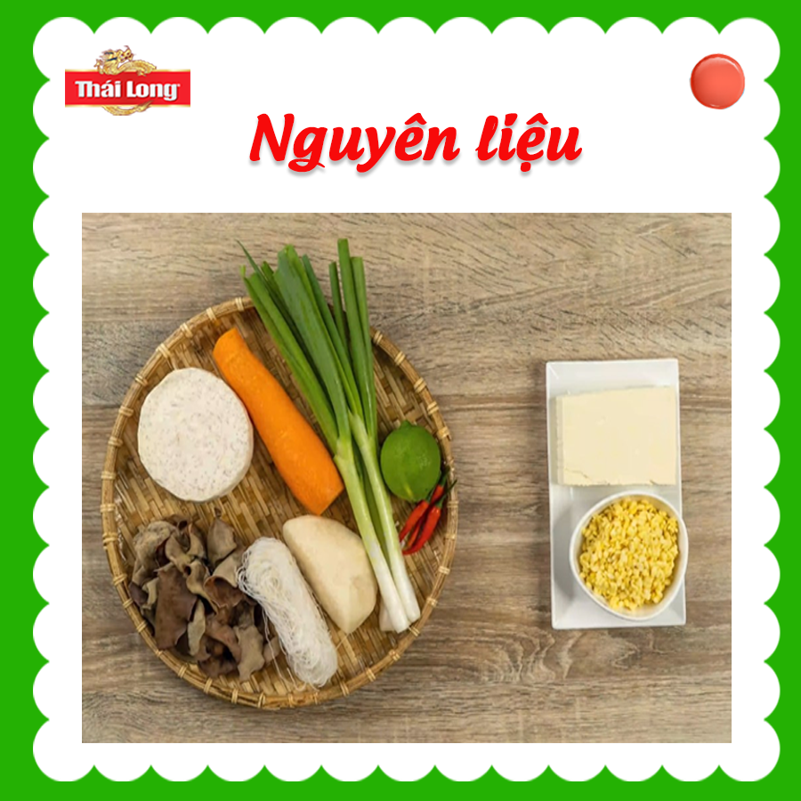 Đầu tiên, bạn cho lần lượt tất cả các nguyên liệu: khoai môn chiên, đậu hũ, nấm mèo, cà rốt, củ sắn, đậu xanh, hành phi và một ít hành lá ra khay đựng.Tiếp theo, nêm thêm vào hỗn hợp nhân 2 muỗng cà phê hạt nêm chay, 1/2 muỗng cà phê muối, 2 muỗng cà phê đường, 1/2 muỗng cà phê bột ngọt và một ít tiêu.