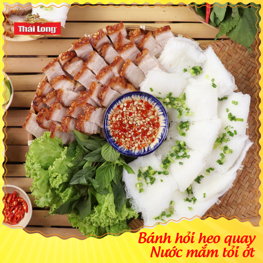 Bánh hỏi heo quay là một trong những món ăn truyền thống được khá nhiều người yêu thích. Không chỉ dùng trong các bữa ăn gia đình, bánh hỏi heo quay còn được dùng rất nhiều trong các bữa tiệc lớn nhỏ. Không chỉ hấp dẫn bởi những miếng thịt giòn rụm, béo ngậy, rau sống tươi non, sợi bánh hỏi trắng mịn; bánh hỏi heo quay còn ấn tượng bởi chén nước mắm đẹp mắt với vị chua, cay, mặn, ngọt rất hài hòa.