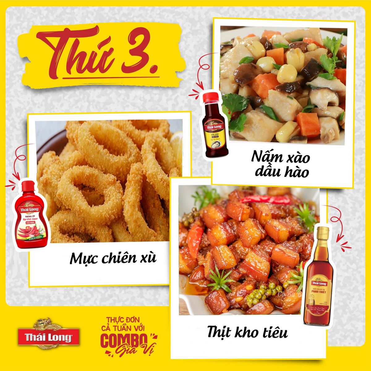 Cùng bộ ba sản phẩm Thái Long: #Nước_mắm + #Dầu_hào + #Tương_ớt "khuấy đảo" mọi món ngon cho cả tuần cùng gia đình bạn.
