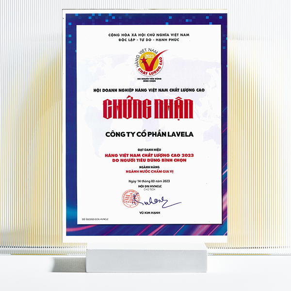 Nhờ sự tin yêu của Người tiêu dùng và khách hàng, LAVELA vinh dự là một trong những doanh nghiệp đã giữ vững danh hiệu Hàng Việt Nam Chất Lượng Cao Năm 2023 do người tiêu dùng bình chọn. Hơn cả một danh hiệu, đây chính là minh chứng cho sự tin tưởng và yêu mến mà người tiêu dùng đã dành cho thương hiệu Thái Long – nước mắm đặc sản Phan Thiết nói riêng và Công ty Cổ phần LAVELA nói chung.