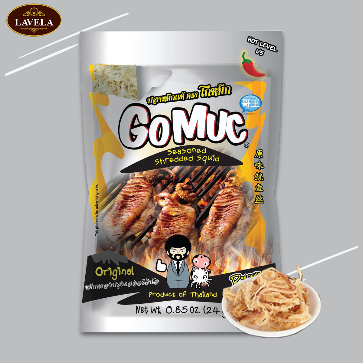 Mực xé tẩm gia vị Go Muc có 4 hương vị khác nhau: nguyên bản, wasabi cay, tomyum, mỗi hương vị có đặc trưng riêng phù hợp từng sở thích của mỗi người. Từng sợi mực dai dai, cay cay tạo nên sản phẩm vô cùng hấp dẫn. Ngại gì mà không thử ngay