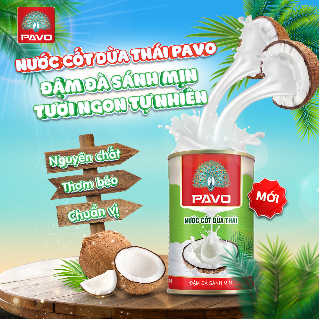 Khám phá hương vị thơm béo chuẩn Thái với Nước cốt dừa Thái Pavo, sản phẩm mới mang đến trải nghiệm nấu ăn nâng tầm cho mọi gia đình. Được chọn lọc từ những trái dừa tươi ngon, nước cốt dừa Pavo giữ trọn vị nguyên chất, sánh mịn và đậm đà tự nhiên, phù hợp cho mọi món ăn từ truyền thống đến hiện đại.
